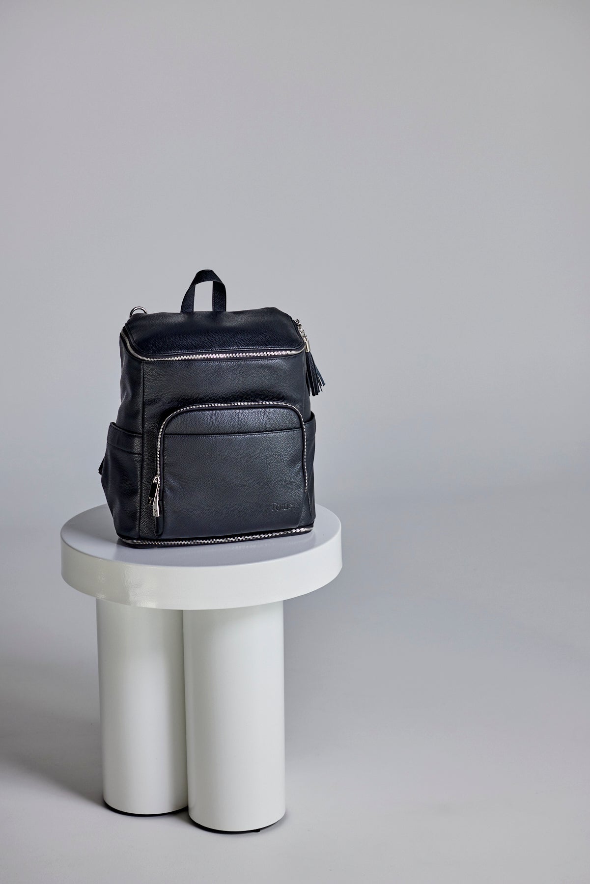 Minimalist in black with a luxe vibe, her clever design with the practicality every parent wants, but doesn't know exists, make her irresistible. She’s a premium vegan leather black baby bag backpack (say that five times fast!), but she’s essential to parents on the go. Designed by parents, for parents who don't want to sacrifice style for practicality and efficiency.