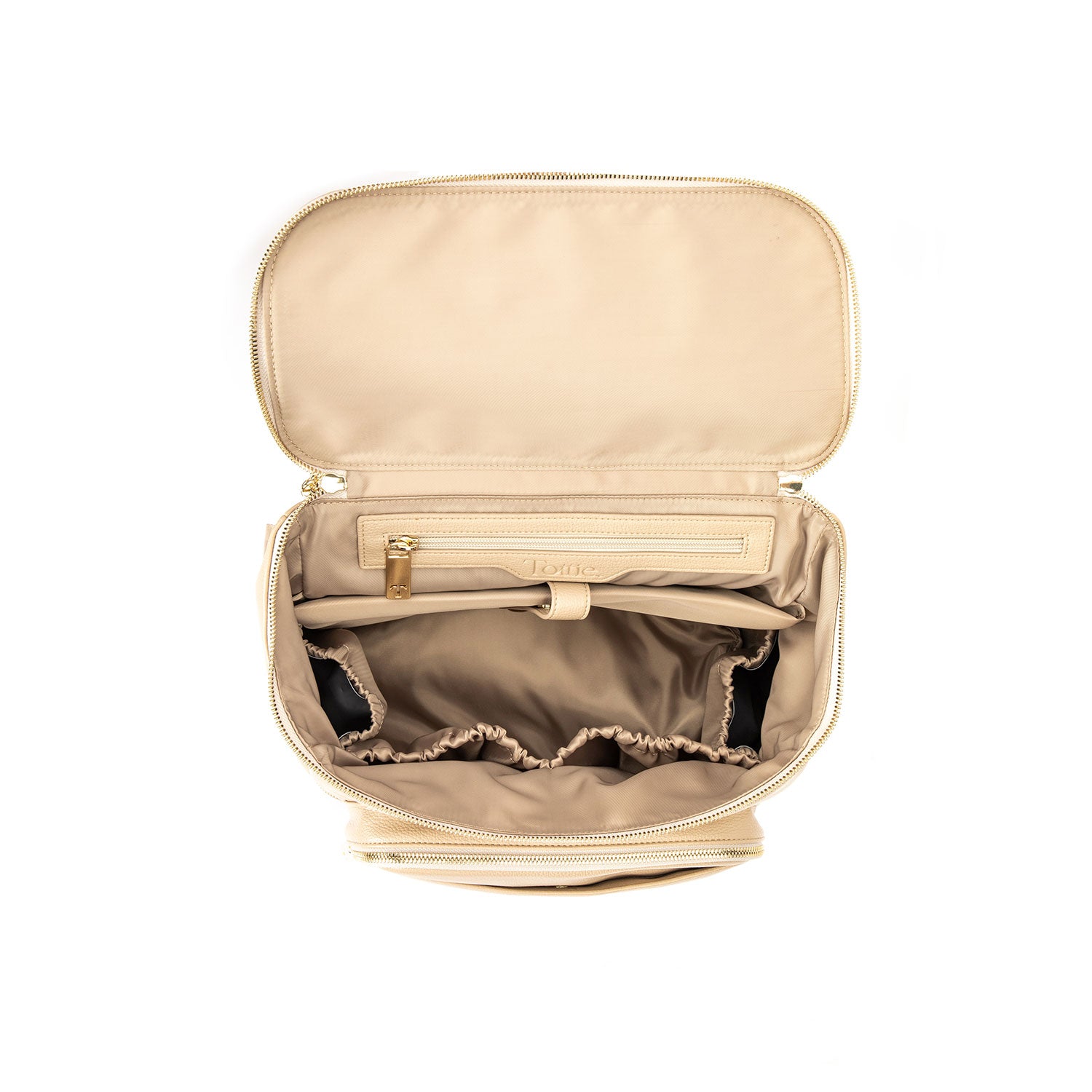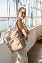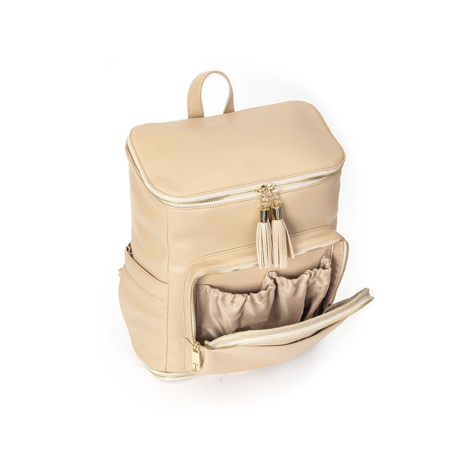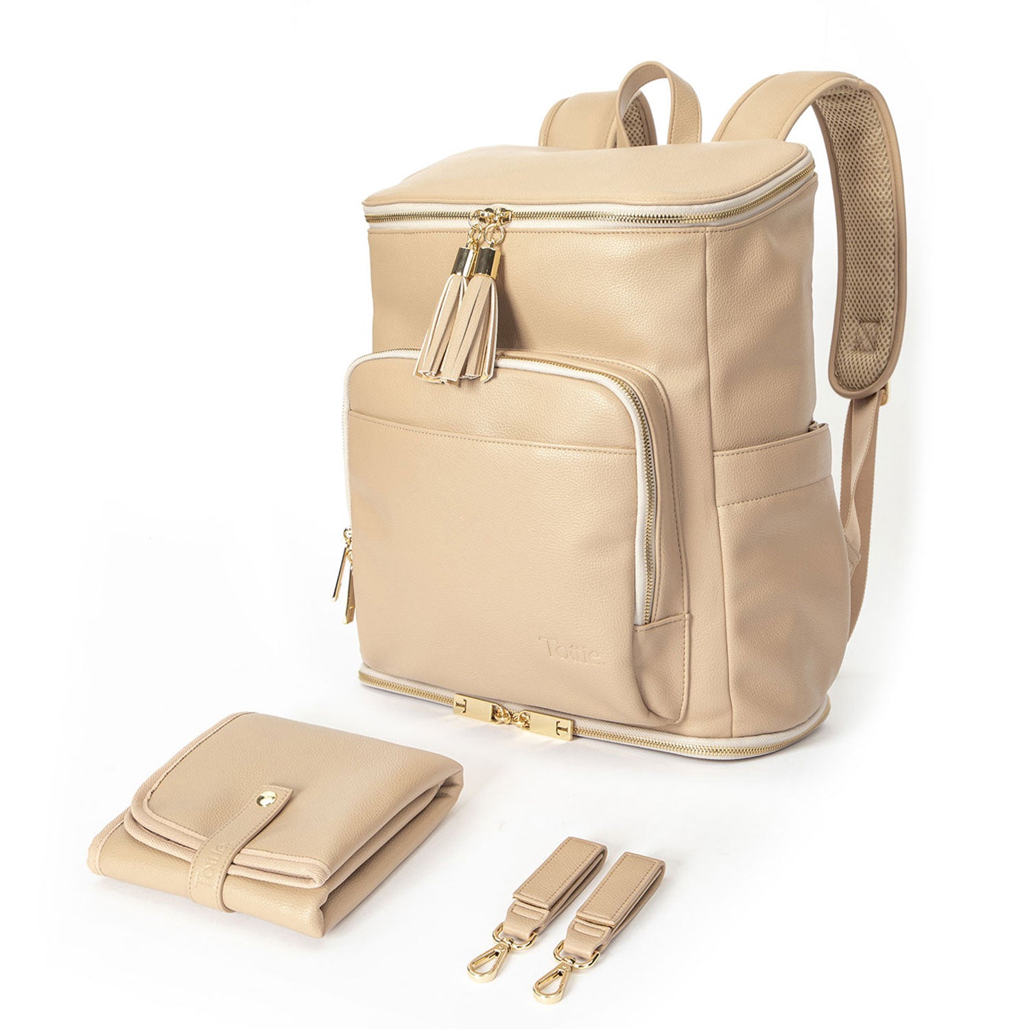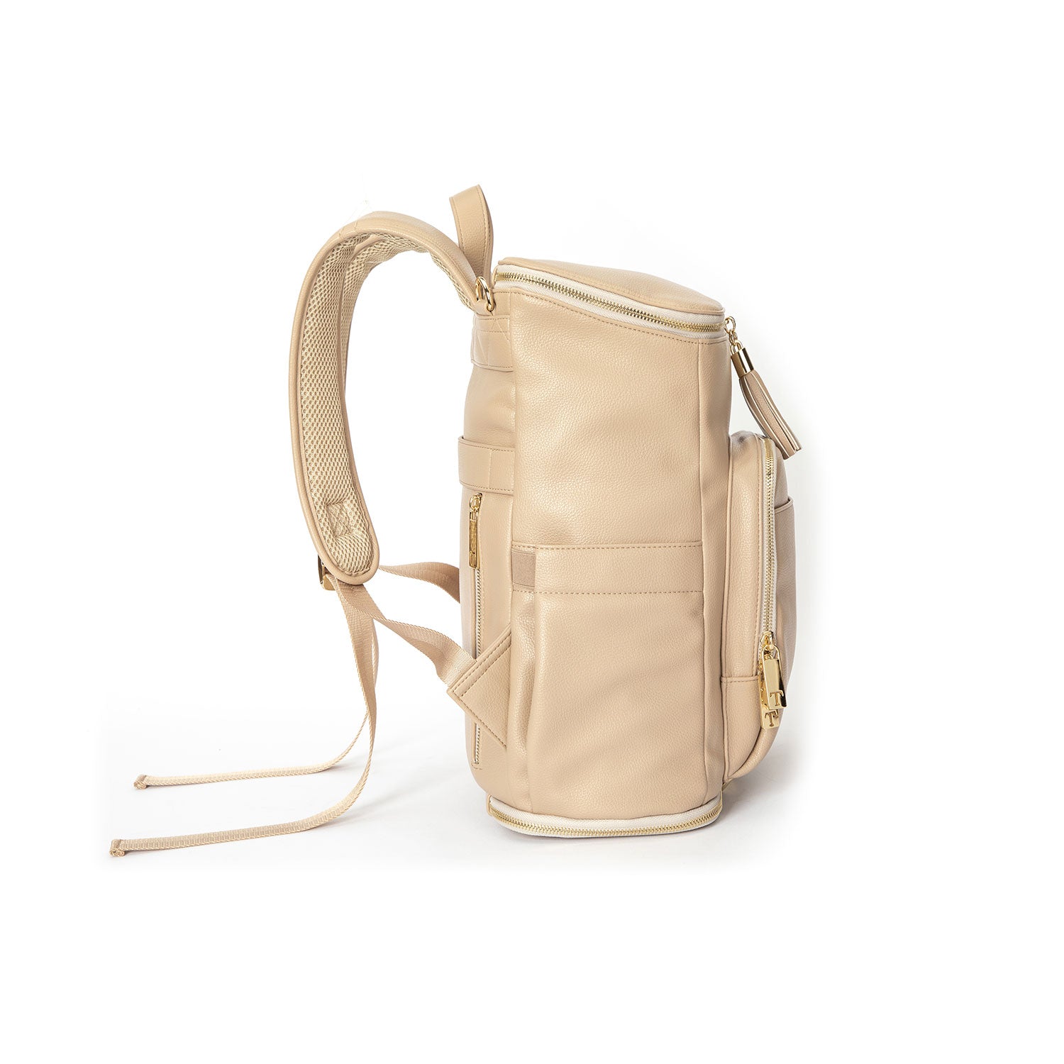 Minimalist in stone with a luxe vibe, her clever design with the practicality every parent wants, but doesn't know exists, make her irresistible. She’s a premium vegan leather stone baby bag backpack (say that five times fast!), but she’s essential to parents on the go. Designed by parents, for parents who don't want to sacrifice style for practicality and efficiency.