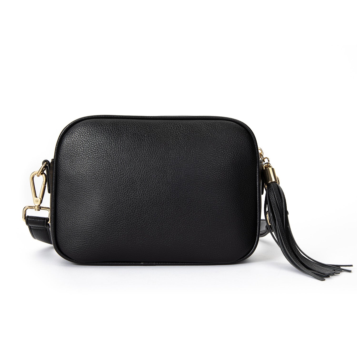 Minimalist in black/gold with a luxe vibe, her clever design with the practicality every woman wants, but doesn't know exists, make her irresistible. She’s a premium vegan leather black cross body bag, but she’s essential to anyone on the go. Designed by women, for women who don't want to sacrifice style for practicality and efficiency.