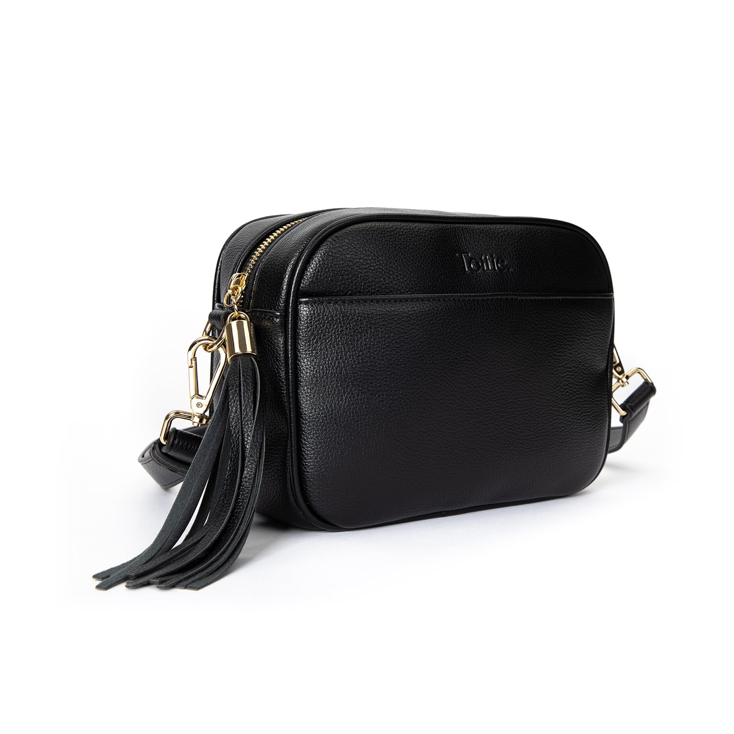 We call this the Mary Poppins bag for a reason. You can fit everything you need for all day on the go activities. Larger than the average cross body, organisation meets all day style. THE black with gold hardware cross body bag by TOTTIE is large enough for more than just the essentials with all the pockets and space you need to keep your you-know-what, together