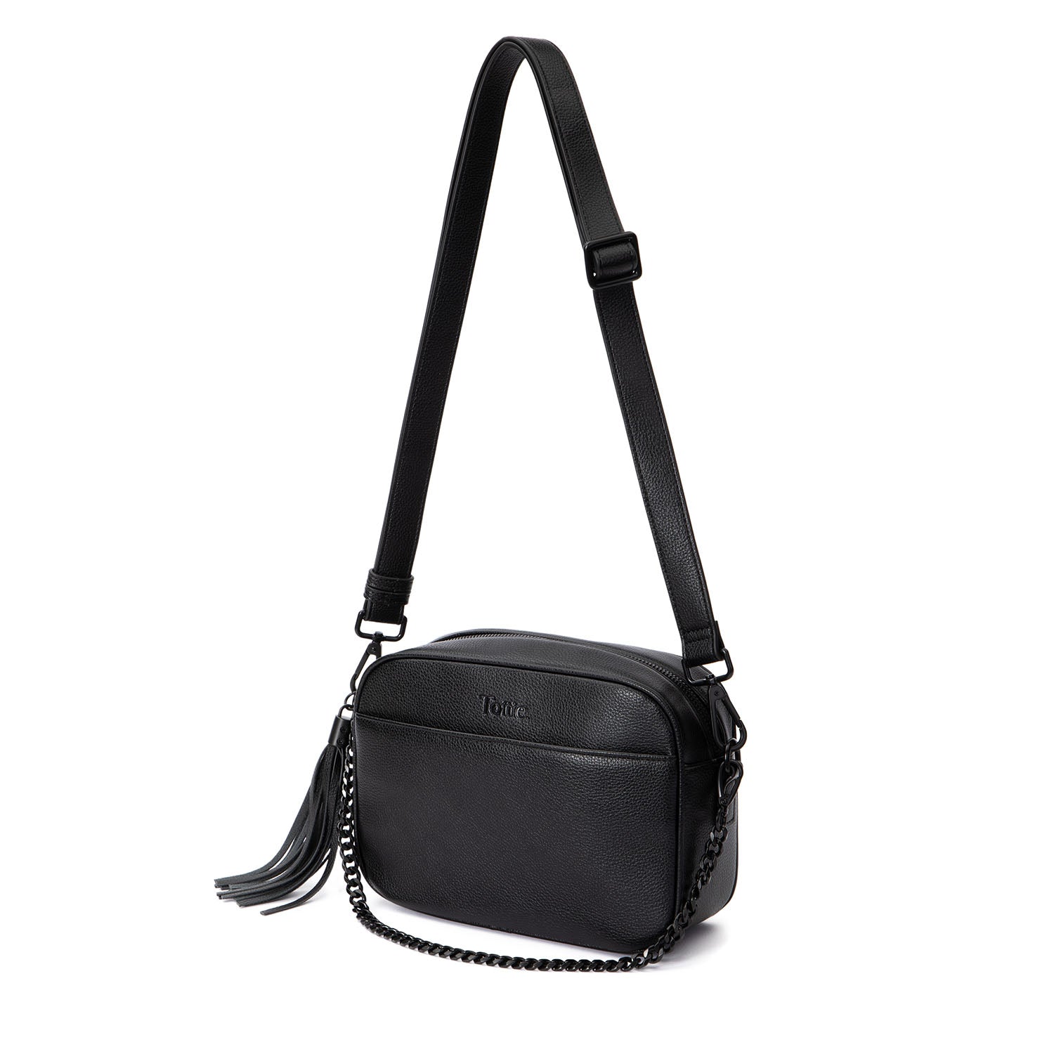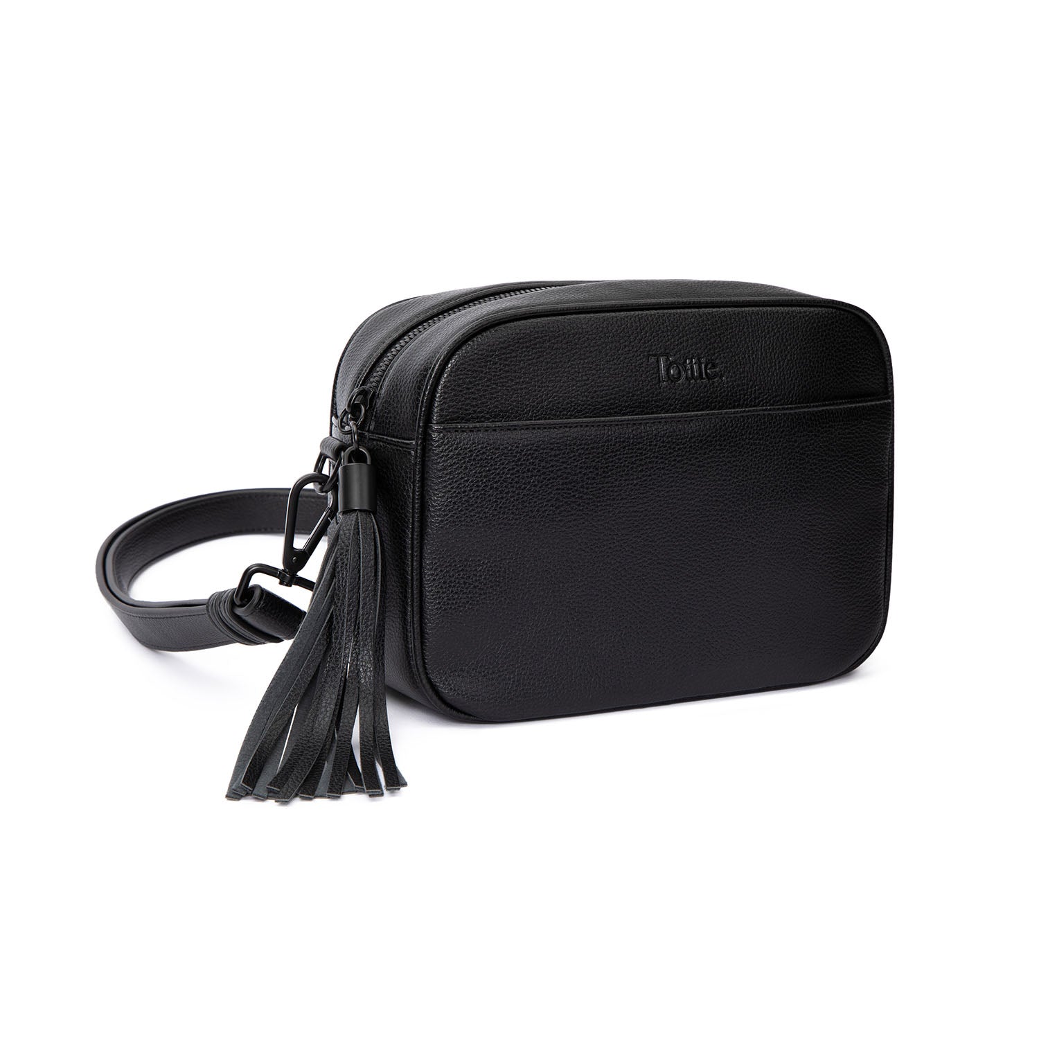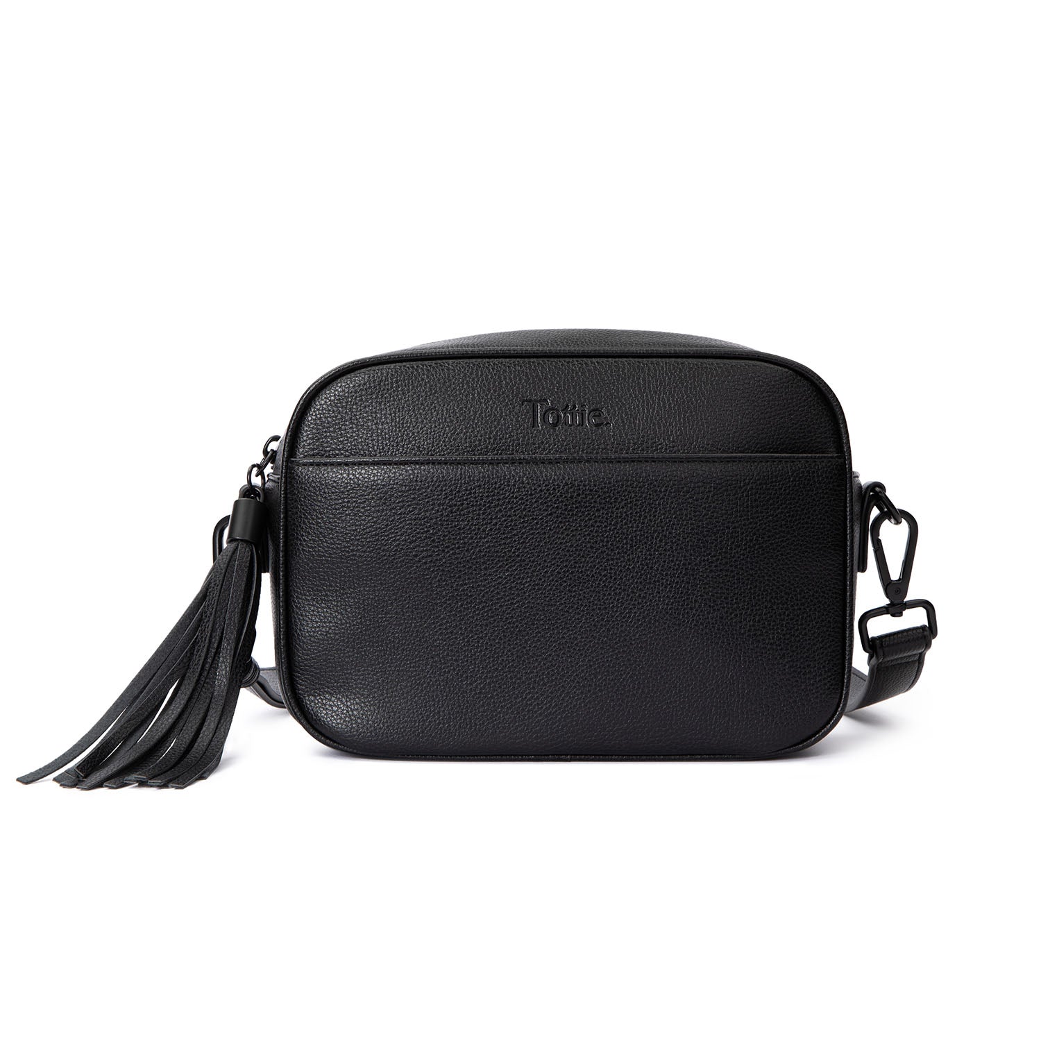 We call this the Mary Poppins bag for a reason. You can fit everything you need for all day on the go activities. Larger than the average cross body, organisation meets all day style. THE black with black hardware cross body bag by TOTTIE is large enough for more than just the essentials with all the pockets and space you need to keep your you-know-what, together